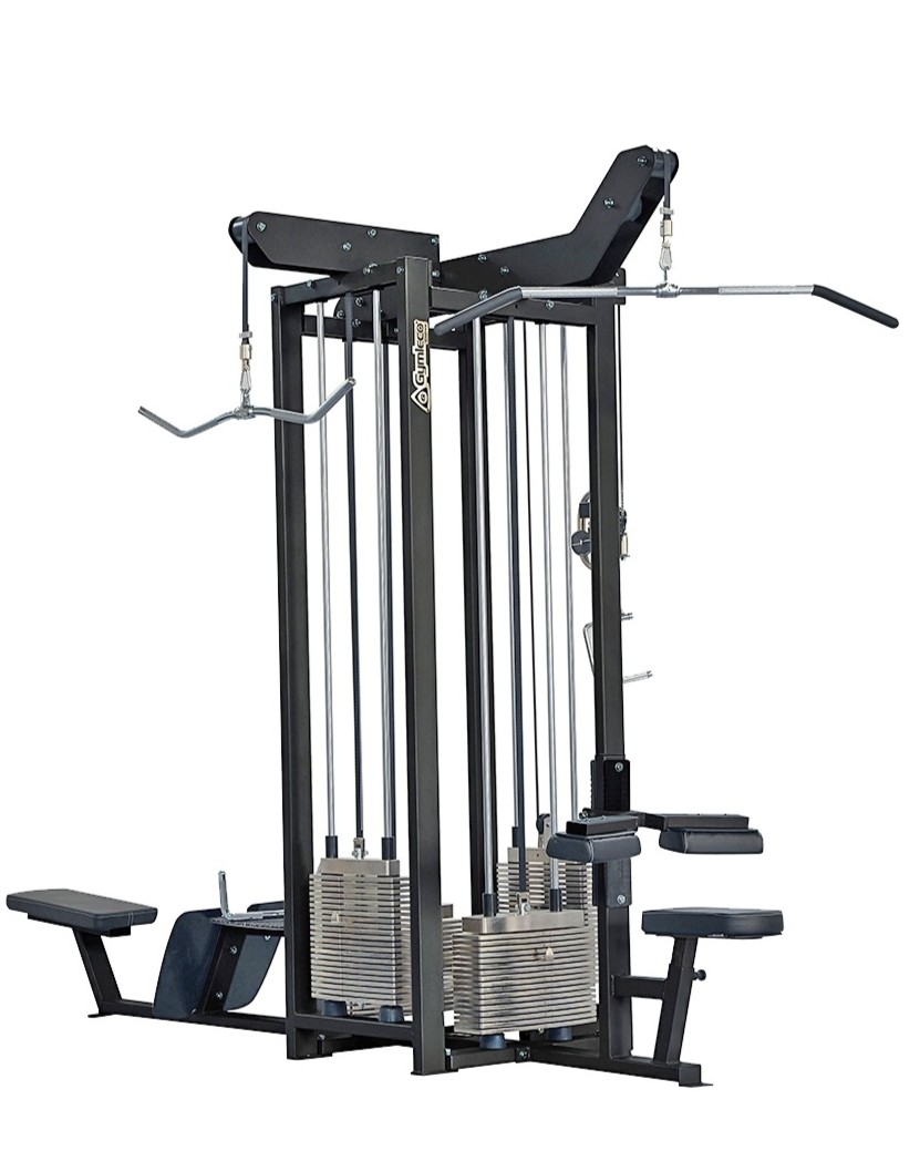 Discover our exquisite four-station multi gym. That allows you to consolidate all the pulleys within a small area of your training facility, optimizing your gym space. The 4-station configuration comprises a lat pulldown, a seated row, and two pulleys. Enabling gym members to engage in these popular exercises simultaneously.