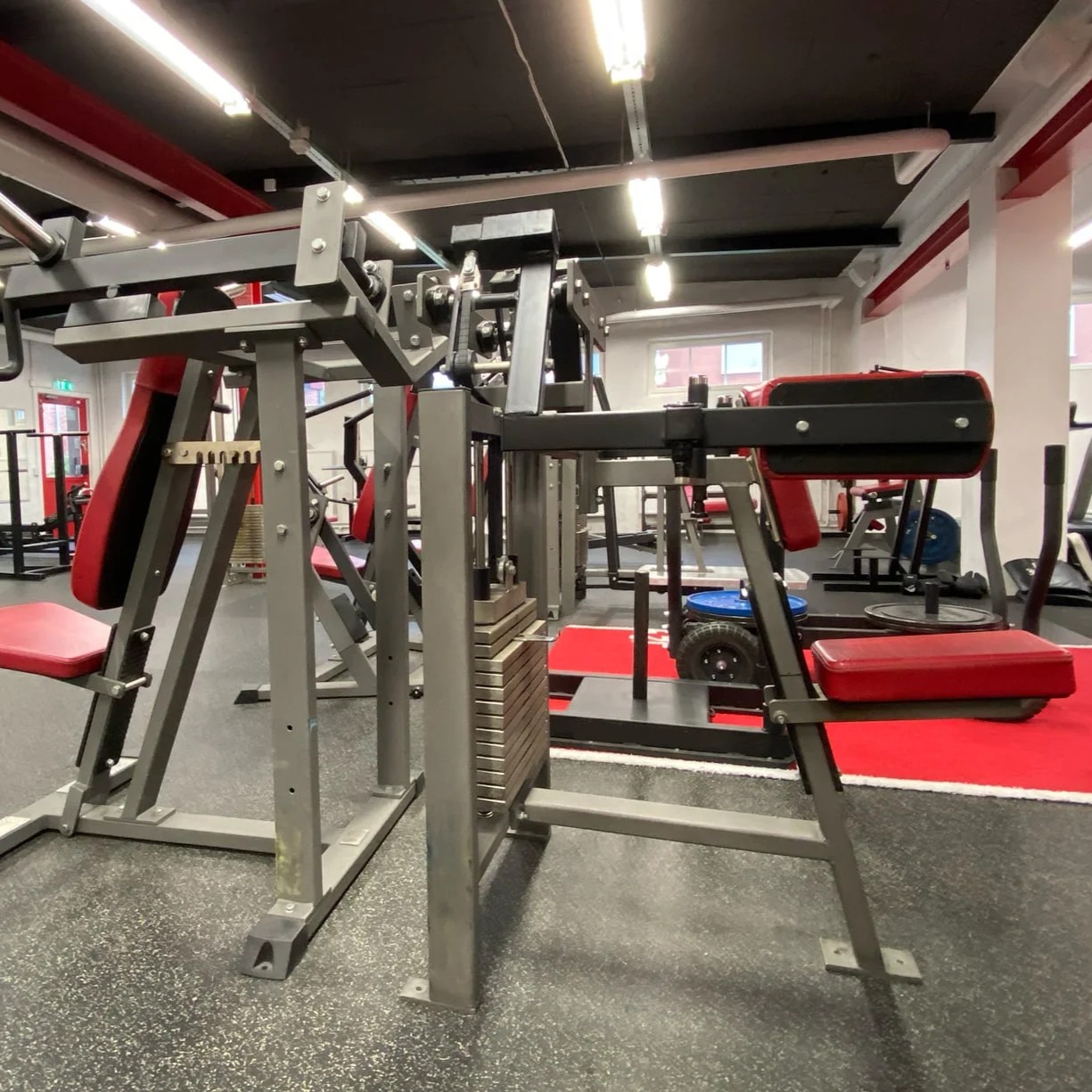 The handles in comfortable rubber are movable. This to make sure that you can keep your 90 degrees when doing the exercise. The seat has our step free setting so that you can change the height depending on your body length. The weight stack is split with lighter weights at the top and heavier at the bottom. There are also balanced counter weights so that the exercise has an easy start. This to make sure that everyone can use the machine.